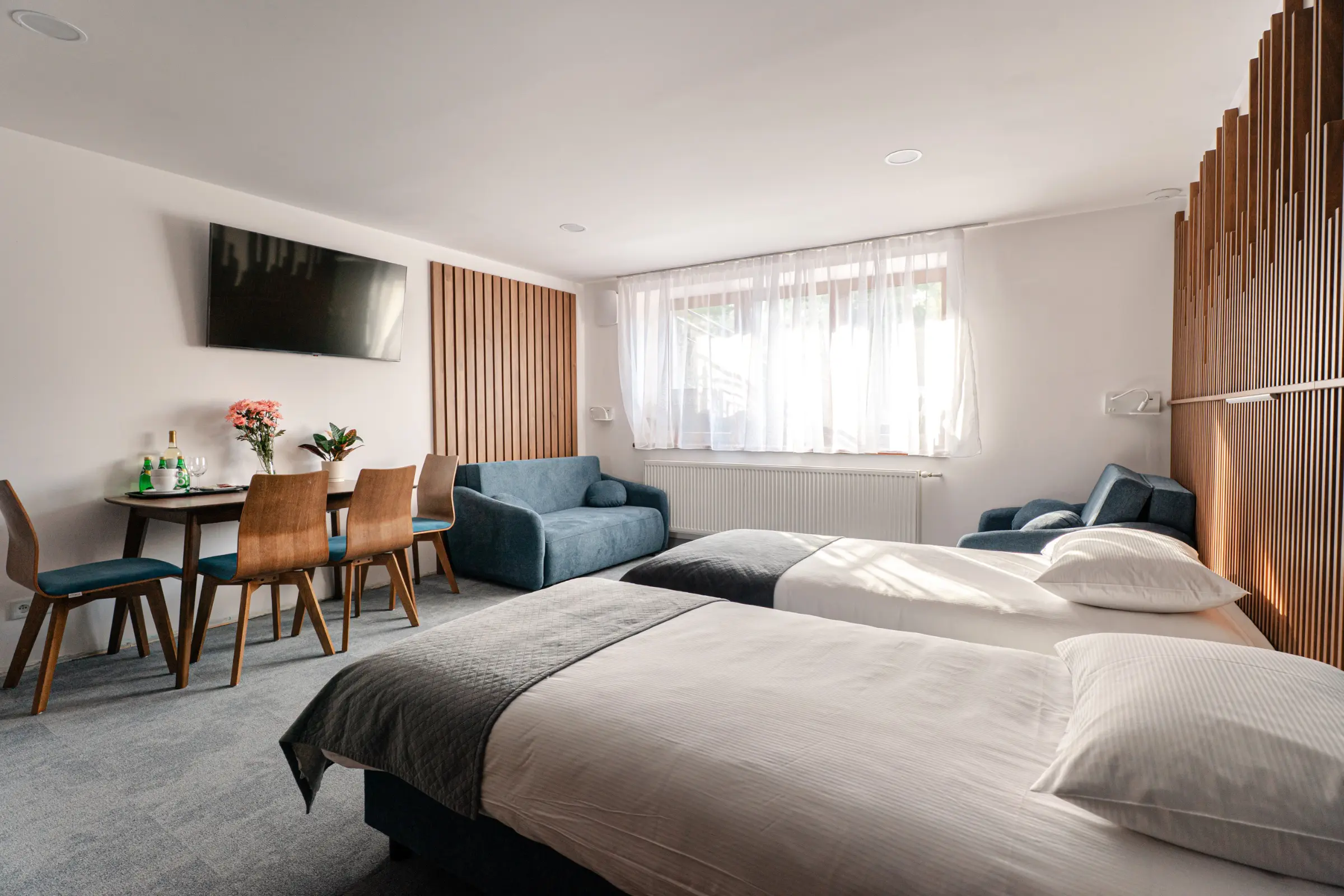 - W pełni wyposażona kuchnia (lodówka jw, piekarnik , mikrofala , zmywarka , płyta 2 palnikowa)