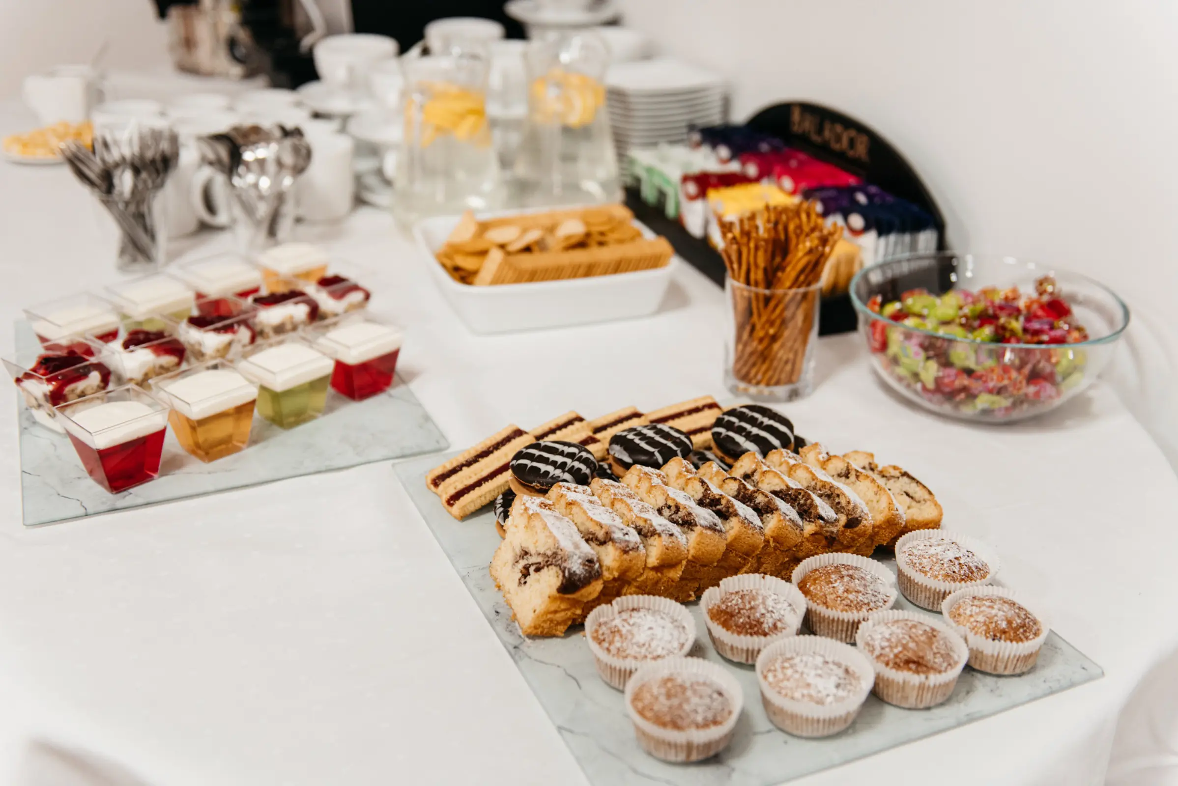 - Pełne wsparcie cateringowe ze zróżnicowanym menu, możliwością przygotowania uroczystych kolacji czy lunchu biznesowego na konferencji.